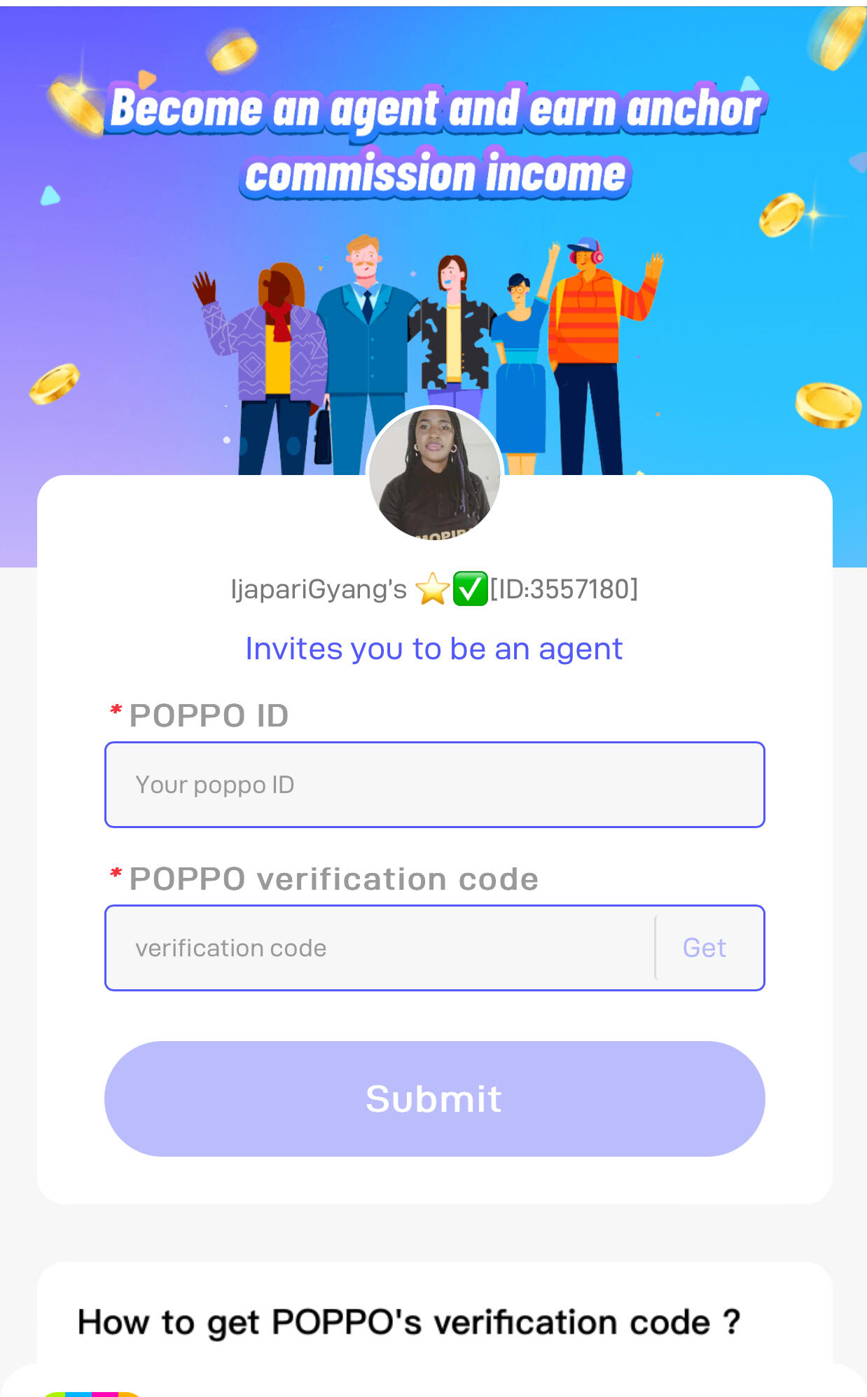 Access the agency registration link provided.4. Enter Your Poppo ID