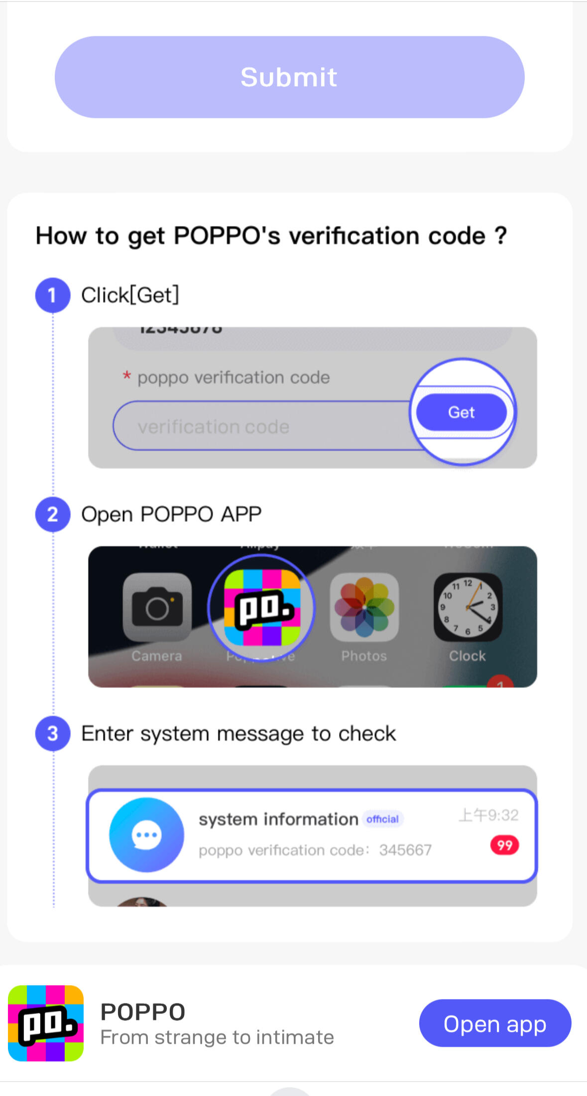 Enter the code sent to your PoppoLive app messages.6. Submit Your Application